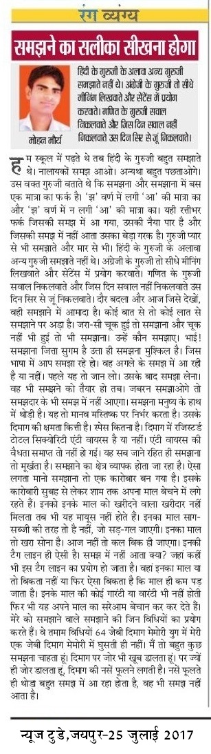 वक्त गुरुजी बताते थे कि समझना और समझाना में बस एक मात्रा का फर्क है। ‘झ’ वर्ण में लगी ‘आ’ की मात्रा का और ‘झ’ वर्ण में न लगी ‘आ’ की मात्रा का।